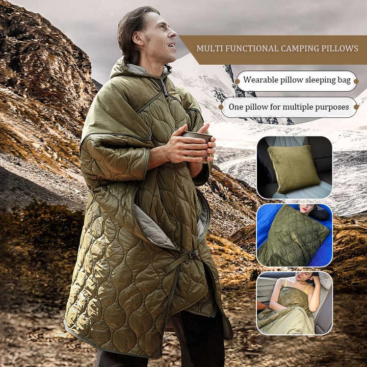 Folosiți pernă, mantie, pătură, sac de dormit