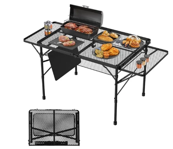 Masă de camping din aliaj birou pliabil în aer liber, masă pliabilă cu 2 panouri cu aripi, masă de camping de 3x2 ft cu desktop de plasă, masă de grătar pliabilă reglabilă în înălțime, cu geantă de plasă, masă portabilă în aer liber pentru picnic, camping, grătar, plajă
