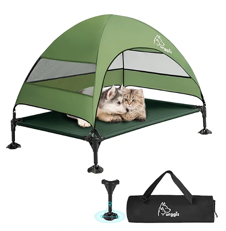 Pat pentru pisici cu baldachin, pat ridicat pentru caini cu baldachin, pat portabil pentru caini in aer liber inaltat cu picioare stabile anti-alunecare, pat pentru animale de companie cu umbra mai larga, paturi inaltate pentru caini mari, pentru camping, pentru interior si exterior.