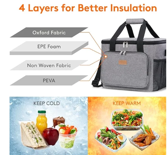 Capacitate mare: Dimensiuni - 13,8 "(35cm) × 11" (28cm) × 11 "(28cm). Capacitatea maximă a cutiei de prânz pentru adulți este de 24L și este suficient de spațioasă pentru a stoca 40 de conserve de cocs (330 ml), sau prânzul dvs., cum ar fi sandwiches, saladă, gustări, băuturi și fruits și așa.