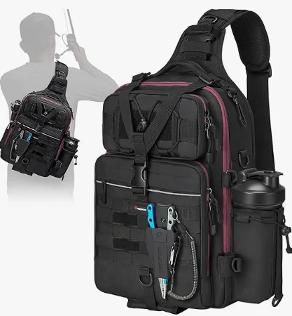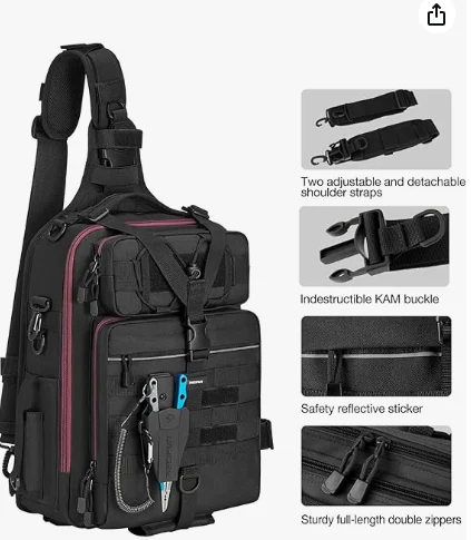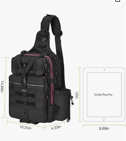 Geanta de pescuit în aer liber, geanta de atac de pescuit realizată cu echipamente de înaltă calitate, țesăturile noastre de nylon de înaltă densitate de 1000D sunt rezistente la apă și rezistente la abraziune. Cataramele noastre Kam și SBS sunt indestructibile și rezistente